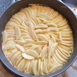 - Die Apfelspalten leicht in den Teig drücken, damit sie stehen bleiben.